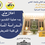 على الراغبين تقديم طلباتهم الى عمادة كلية التمريض اعتباراً من يوم الخميس الموافق 11/9/2025 ولغاية يوم الاثنين الموافق 15/9/2025. لاجراء المقابلة معهم .